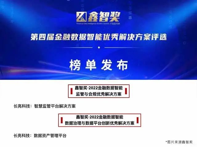 近日,金科创新社发布鑫智奖·第四届金融数据智能优秀解决方案评选榜单,长亮科技数据资产管理平台和智慧监管平台解决方案分别斩获“数据治理与数据平台创新优秀解决方案”和“监管与合规优秀解决方案”两大奖项,进一步验证长亮科技产品及方案的创新与智能化。目前长亮科技已连续两年荣登鑫智奖榜单。