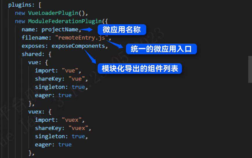 微应用化:针对vue技术栈已做模块化拆分的系统工程,采取微应用化接入,使用了webpack5提供的模块联邦;