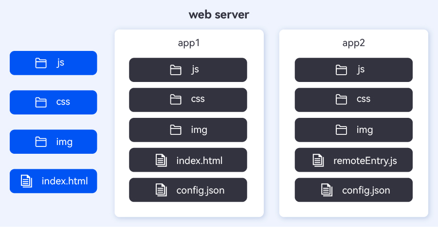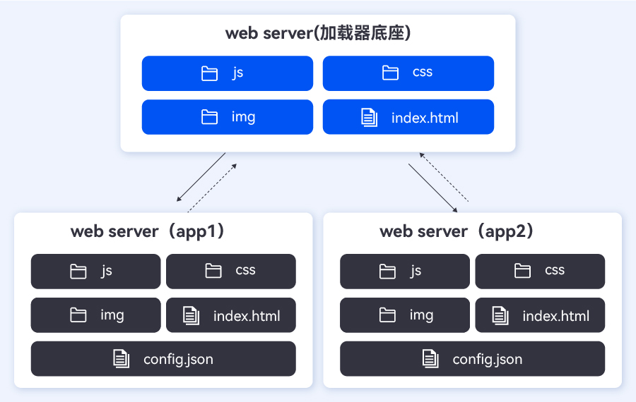 微前端的部署有两种形式,一种是将所有微应用的资源与底座加载器合并成一个文件夹,进行合并部署,只提供一个Web服务;另一种则是将底座和微应用分开部署,每个微应用都提供单独的Web服务。