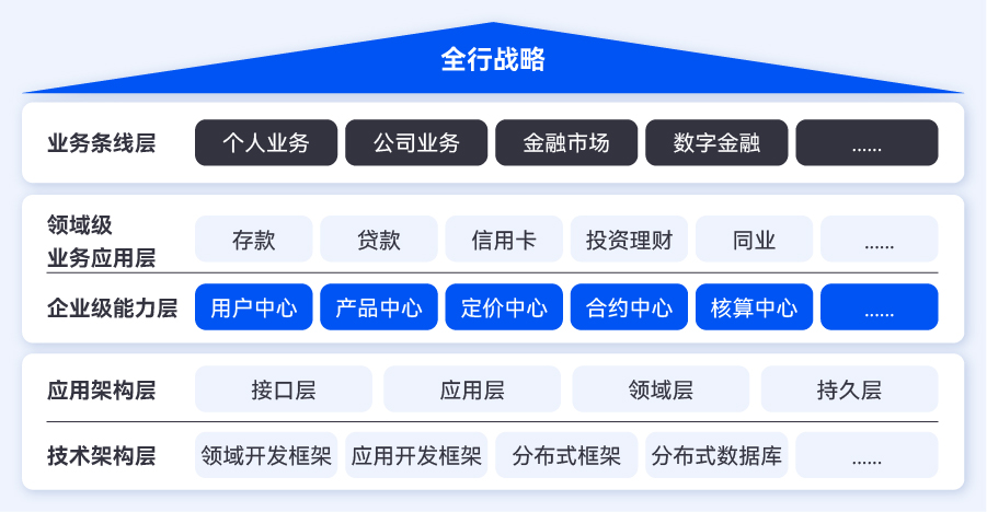 对于银行业来说,构建业务中台目的就是要将企业业务中稳定、核心的能力沉淀下来,在外界需求场景变化时,通过复用这些能力快速、高质量地响应和支撑前台服务,以帮助企业在快速变化的市场形势中立于不败之地。