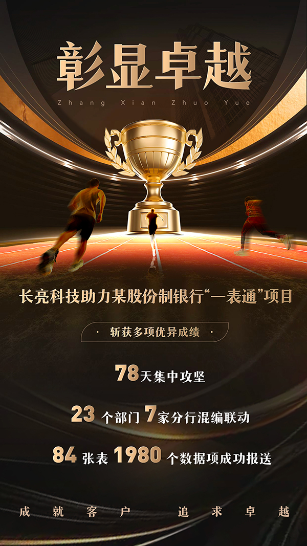 作为该项目的承建方,长亮科技团队凭借在监管报送领域的专业能力和丰富经验,完成了监管集市建设、一表通数据处理、一表通报送系统建设、一表通数据治理等一系列工作,为某股份制银行“一表通”项目的顺利落地提供了高质量的技术支持与实施服务。