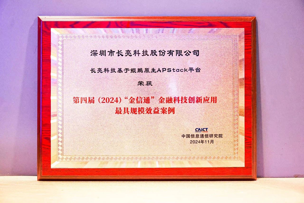 近日,以“数慧金融,质引科技”为主题的2024(第七届)金融科技产业大会在北京成功举办。长亮科技凭借“基于鲲鹏原生APStack平台”荣获第四届“金信通”金融科技创新应用最具规模效益案例。会议期间,公司还向与会嘉宾分享了鲲鹏原生开发的实践经验,共同探讨金融科技生态合作中的创新实践。