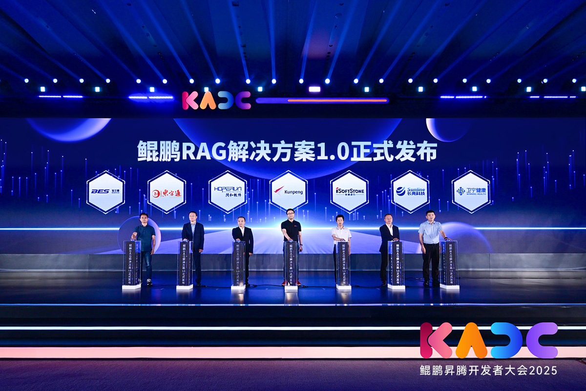 开幕首日,华为鲲鹏携手长亮科技等6家企业联合发布“鲲鹏RAG解决方案1.0”。长亮科技总裁助理孙世胜出席联合发布仪式。