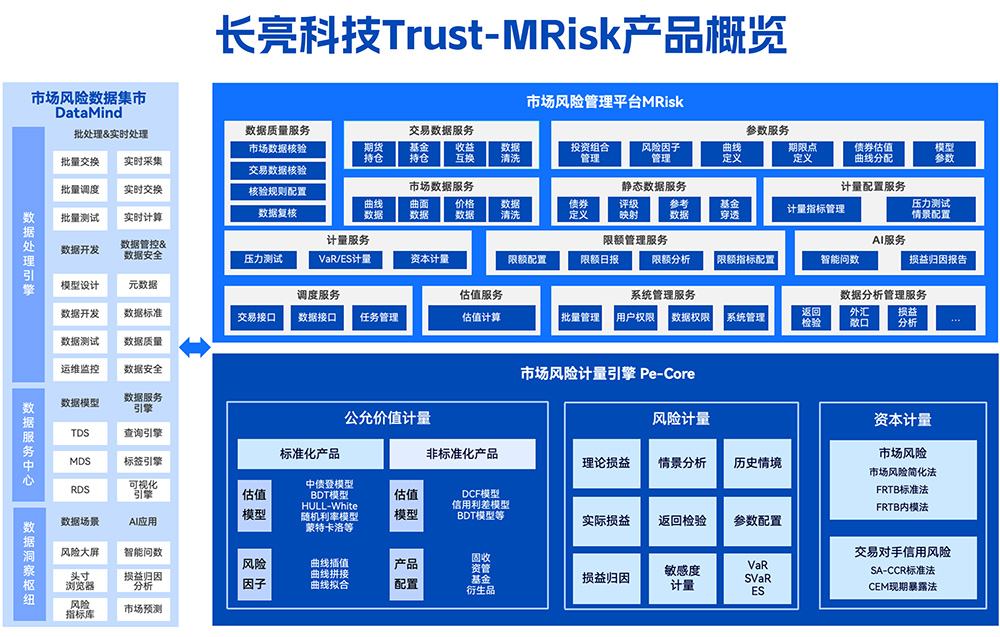 针对《商业银行市场风险管理办法》实施落地,长亮科技可提供市场风险计量的全流程解决方案。