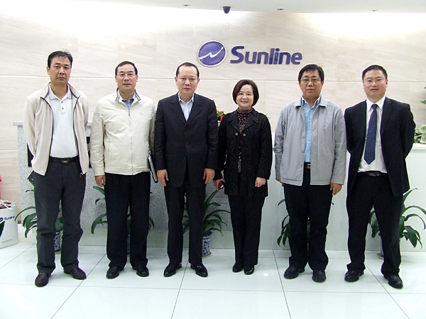 [左起:软件园管理中心徐绍禹主任、陈庆云副处长、王长春总裁、邱宣副主任、沙新华处长、总裁办孙世胜]