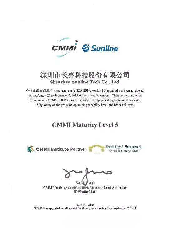自2009年长亮科技开始引入CMMI质量管理体系并成功通过CMMI ML3认证以来,就一直十分重视软件开发、质量管理等方面的发展,并保持着产品2-3年更新迭代的频率,为客户持续提供优质先进的行业解决方案与服务。伴随着公司业务发展和规模的不断壮大,为进一步完善项目交付管理体系,提升整体研发管理水平,长亮科技于2019年1月正式启动CMMI ML5认证工作,并在9月2日成功通过评估,荣获CMMI成熟度五级证书。
