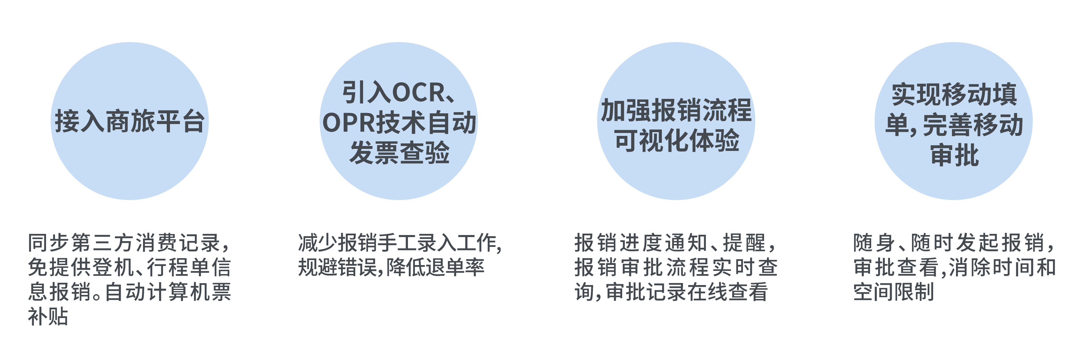 实现对全员差旅报销前端审批、订票和支付的管控;