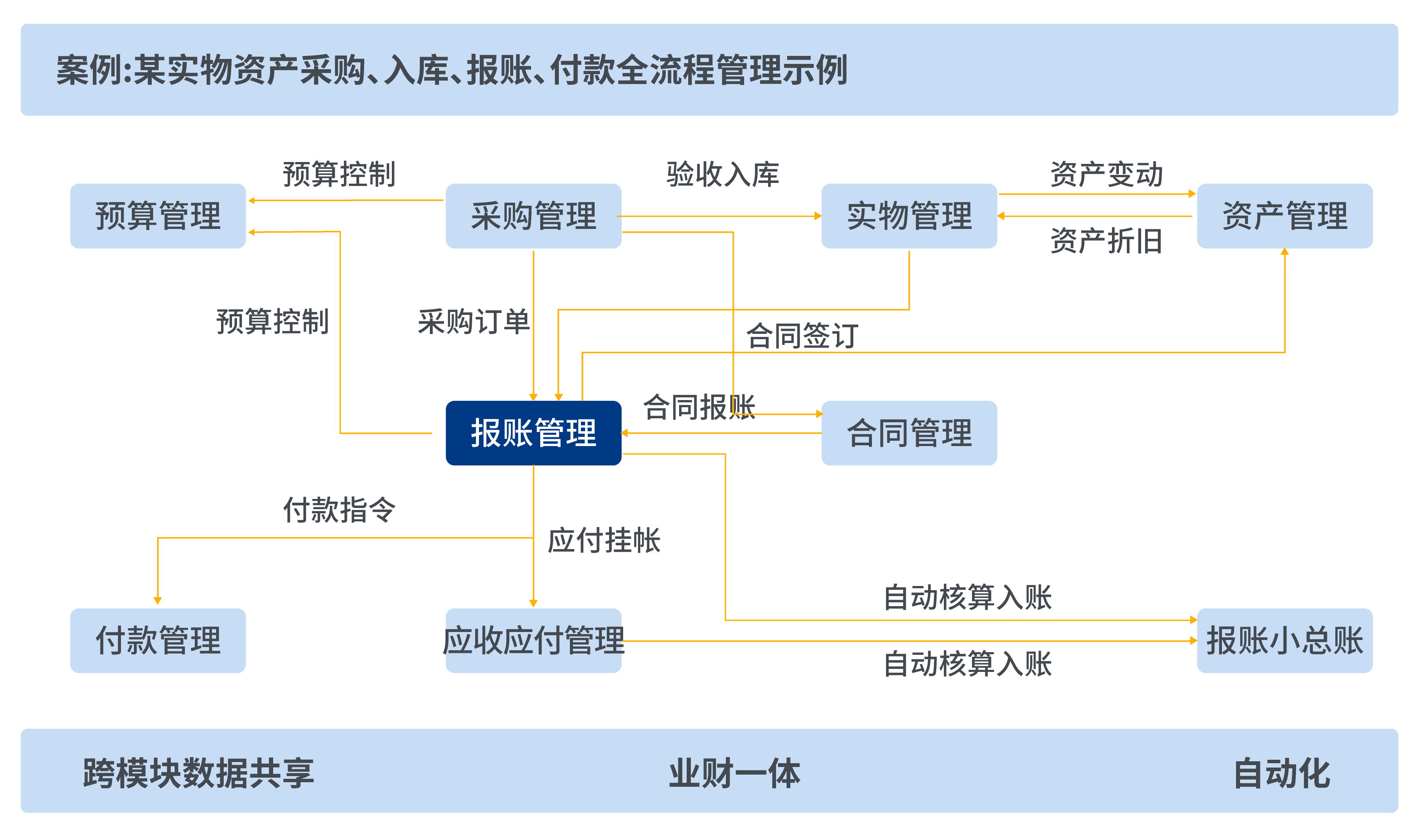实现对预算管理、采购管理、合同管理、租赁资产管理和股权管理等各项业务的全流程覆盖;