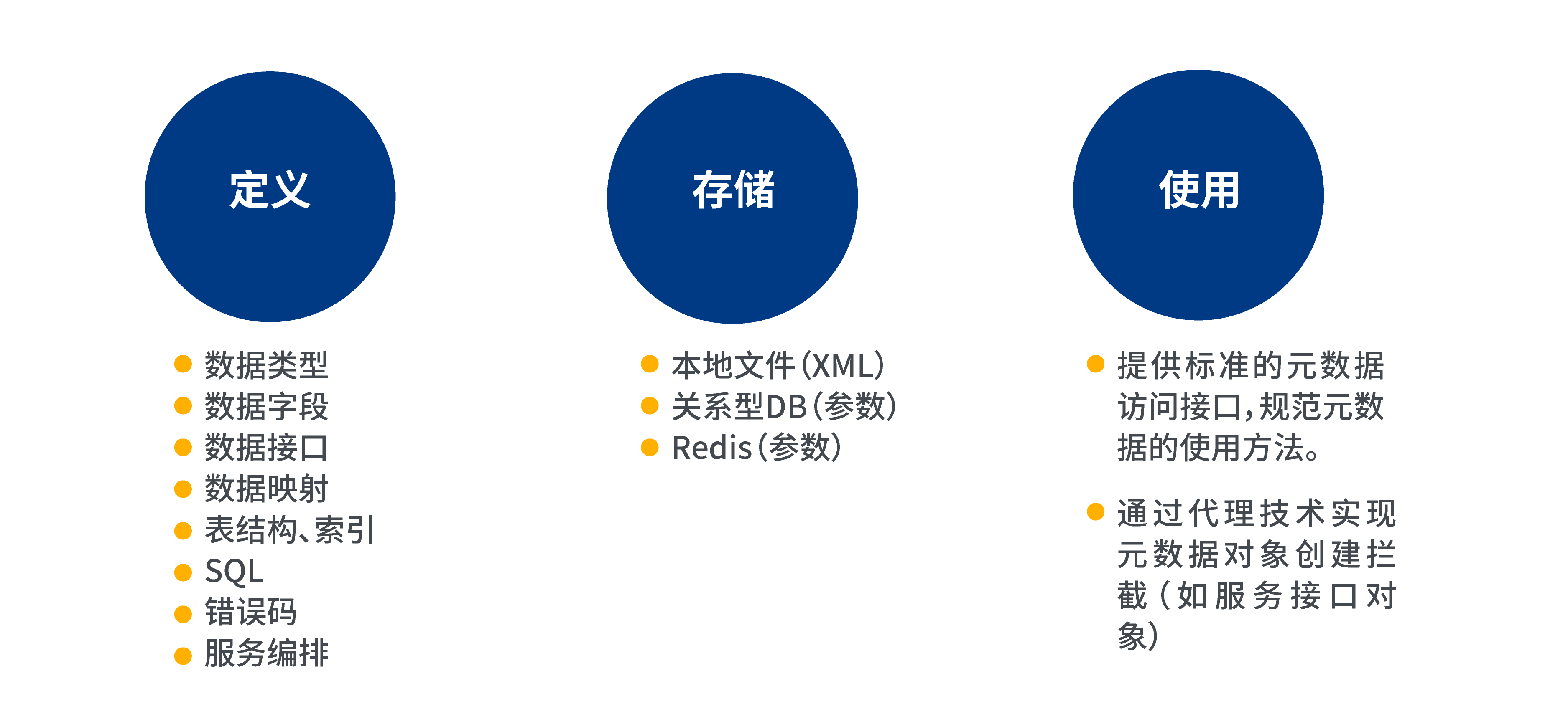 元数据,向应用组件提供类型、字段、接口、服务编排、表结构、SQL、错误码等数据的定义、存储和使用。元数据的最大价值是支撑标准的落地,让应用组件的开发标准化。