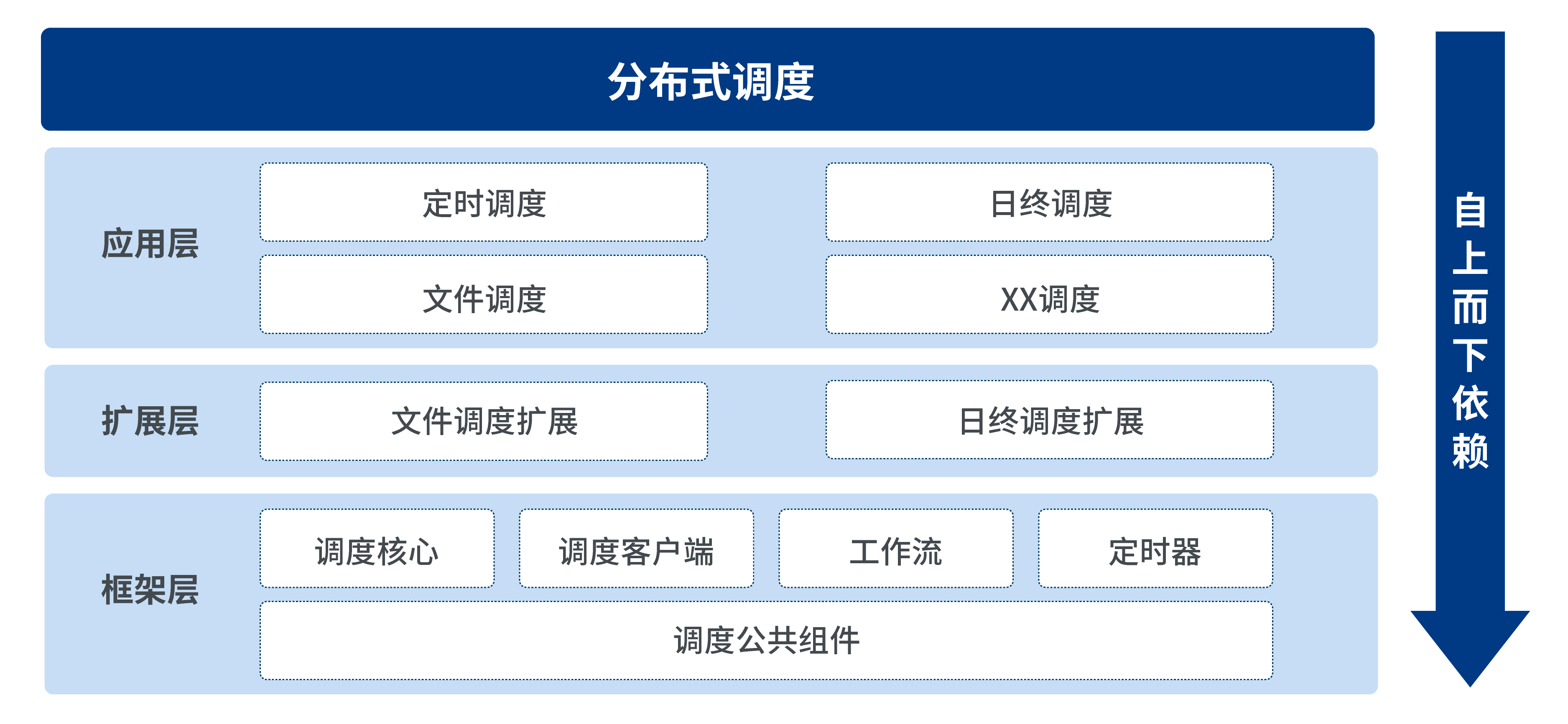 应用层基于框架层和扩展层之上提供灵活的分布式调度应用