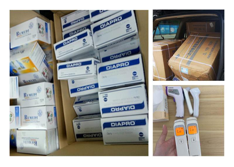 我们的员工王遥平为医护人员捐献蔬菜,参加小区守卡义工