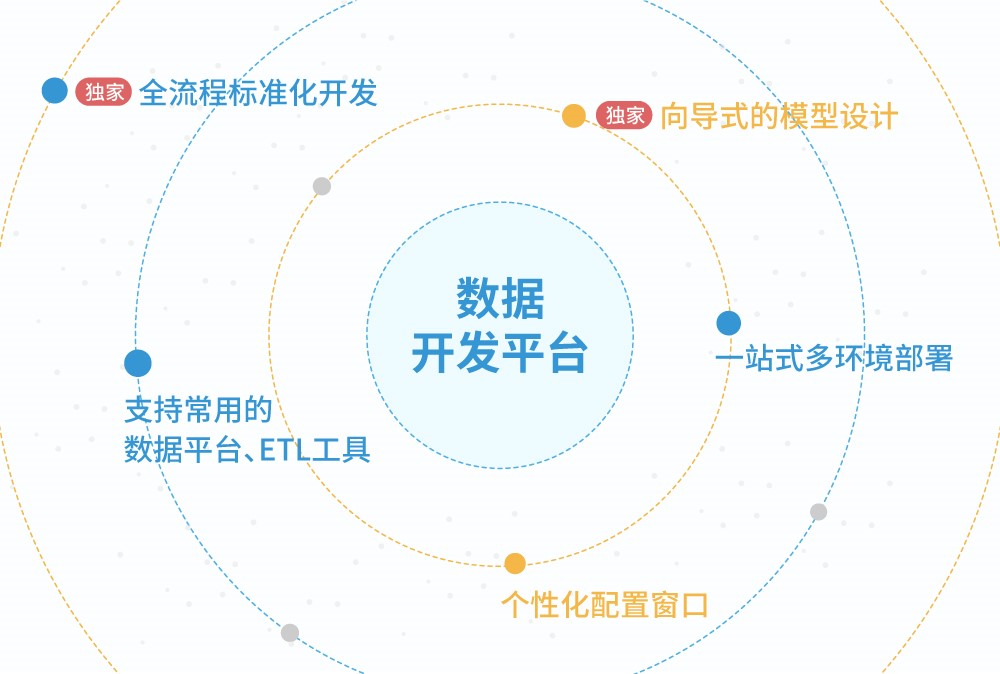 数据开发平台具有丰富的开发方式,支持界面化操作和批量导入的开发功能,具有流程向导,简单易操作,实现需求快速开发,数据类项目ETL开发过程中比人工编码的速度快了5倍多。