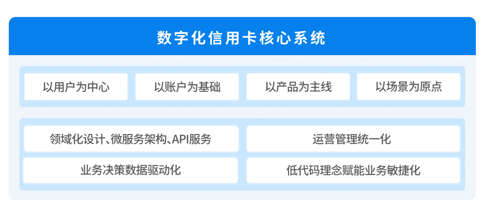 长亮科技认为新一代数字化信用卡核心系统应该以用户为中心、以业务为导向、以高可用为基石、以数字化为灵魂,是一个安全、自主、可靠的开放平台。