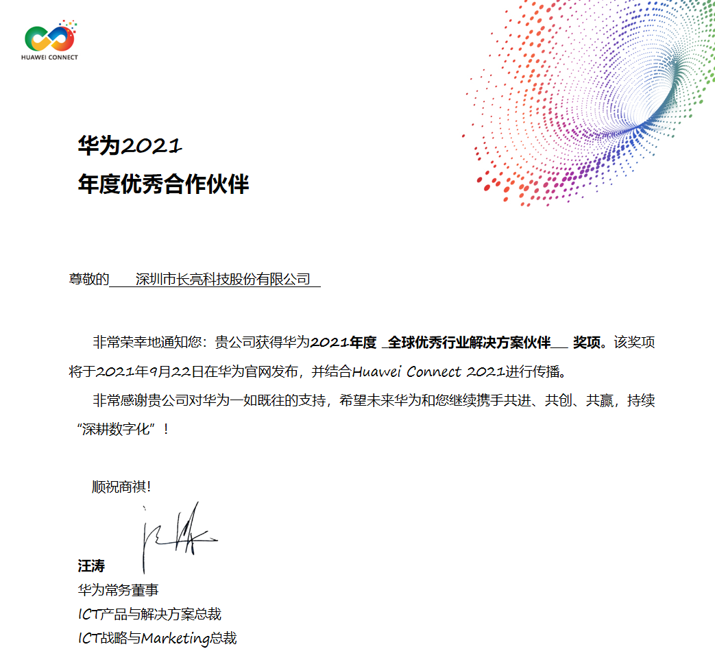 金融行业唯一!长亮科技获评华为2021全球优秀行业解决方案伙伴