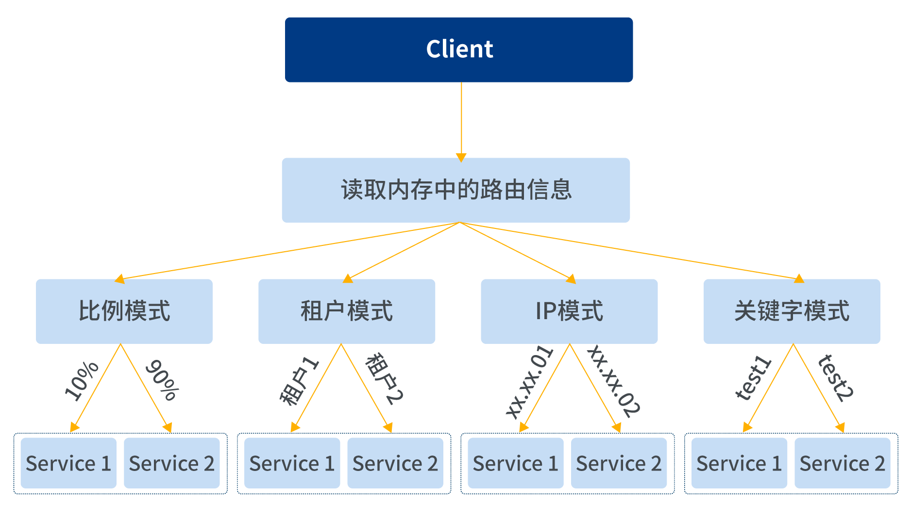 • 租户模式:不同租户路由不同的服务提供者。