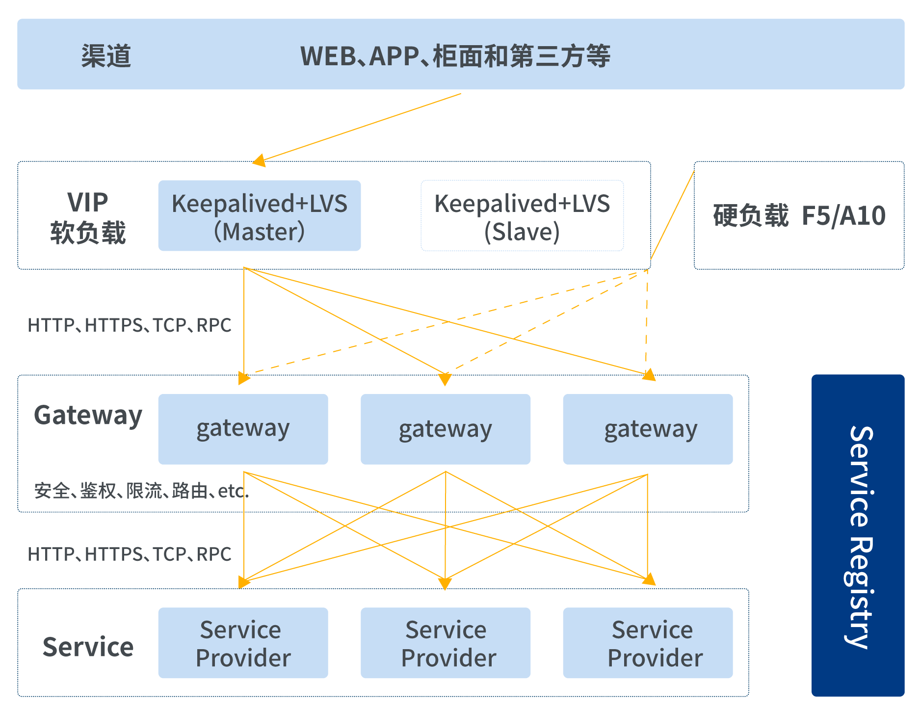 • 网关层对外部和内部进行了隔离,保障了后台服务的安全性