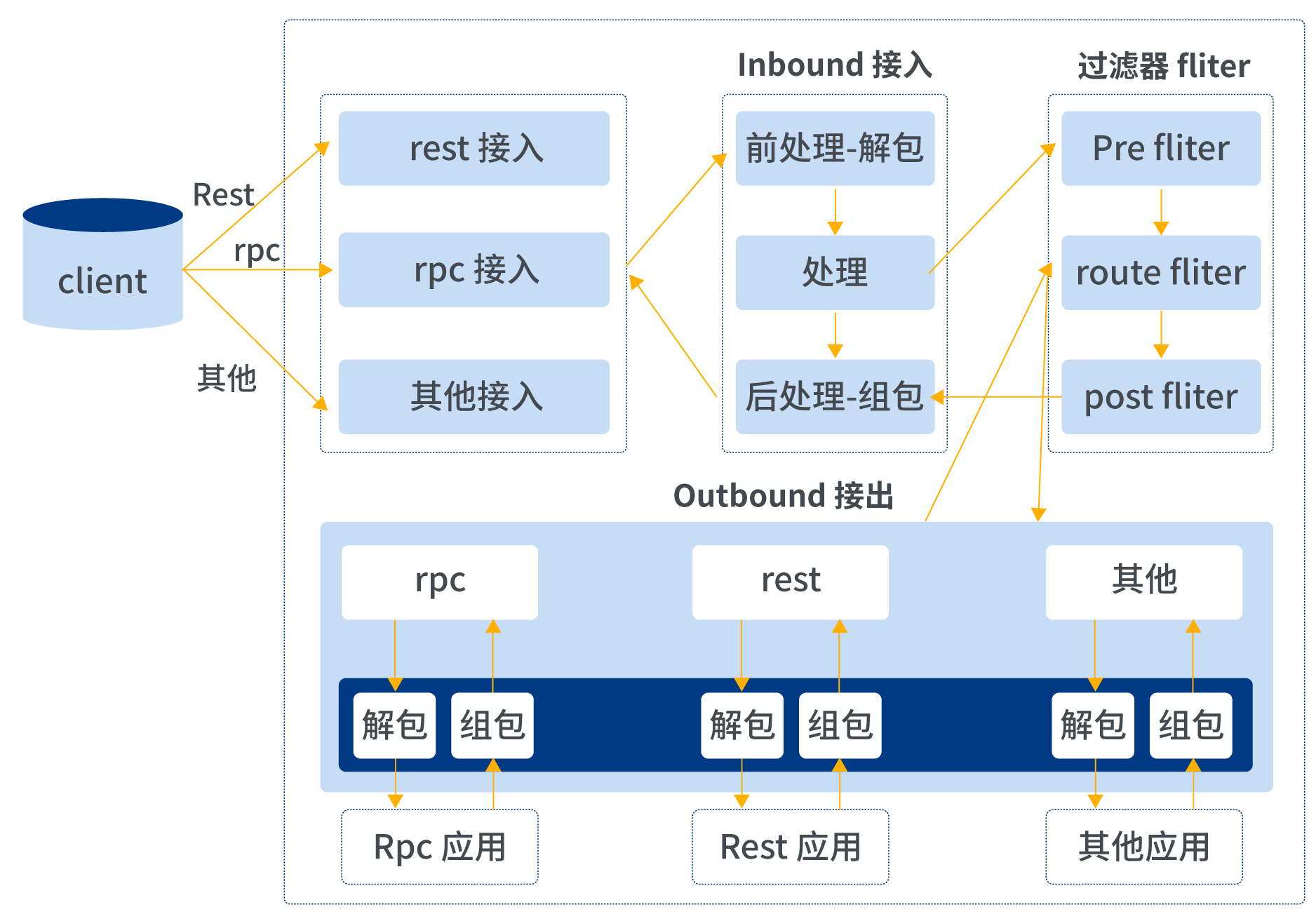 除Filter扩展是在过滤器中进行扩展,其余扩展均是针对inbound和outbound进行扩展。